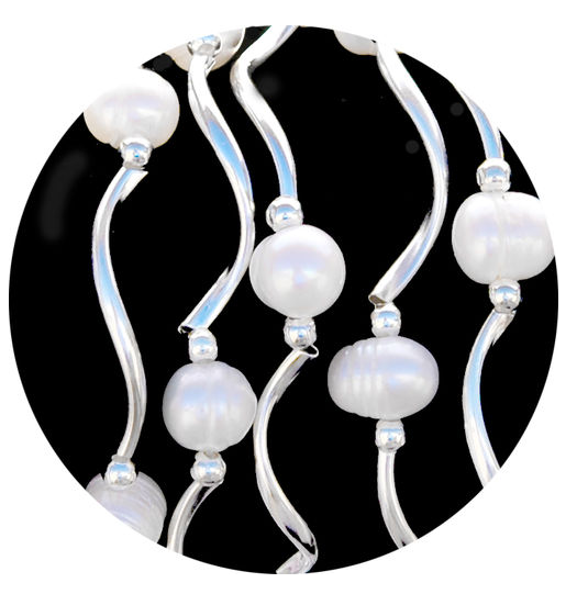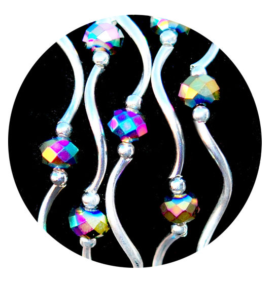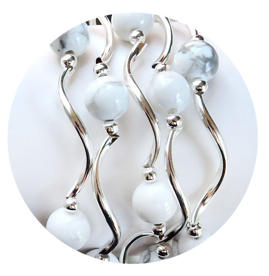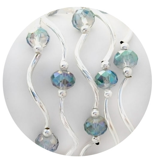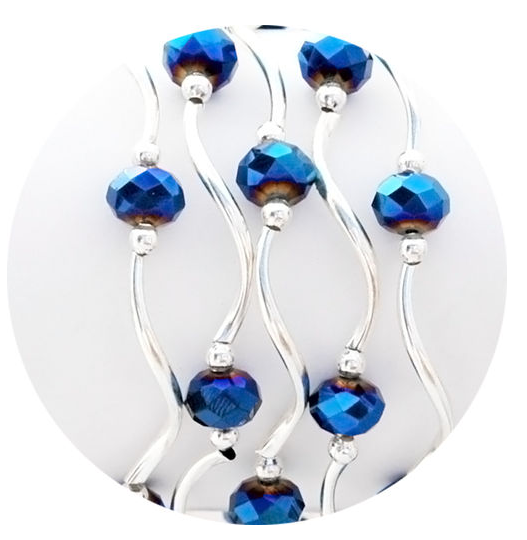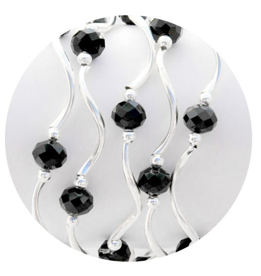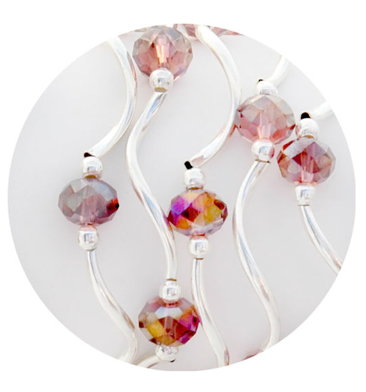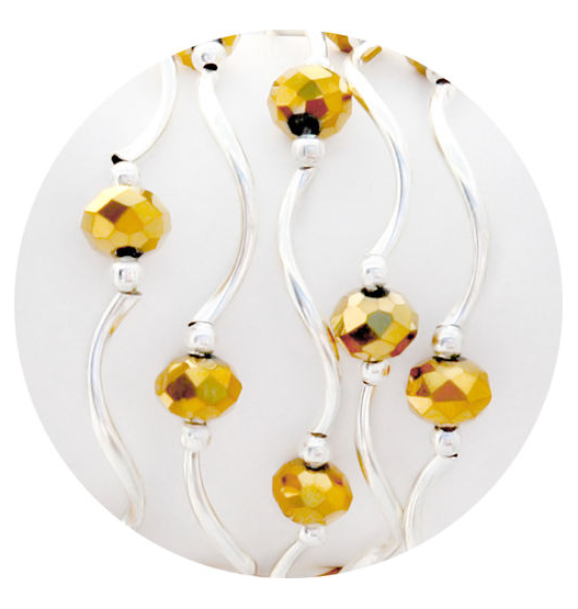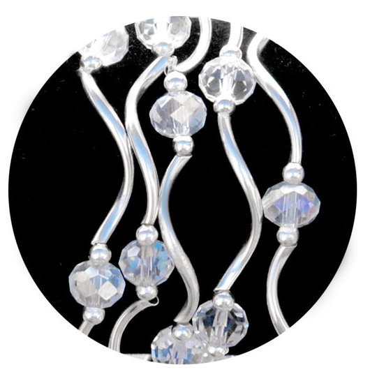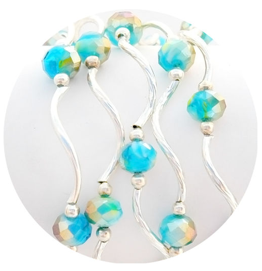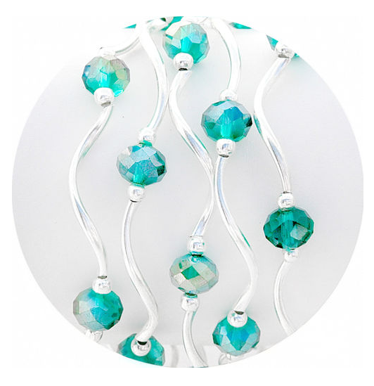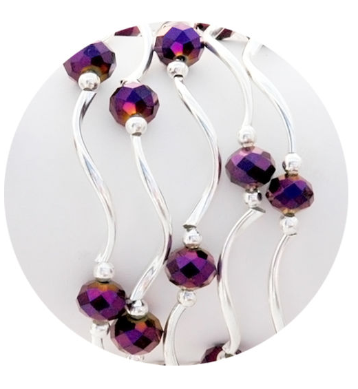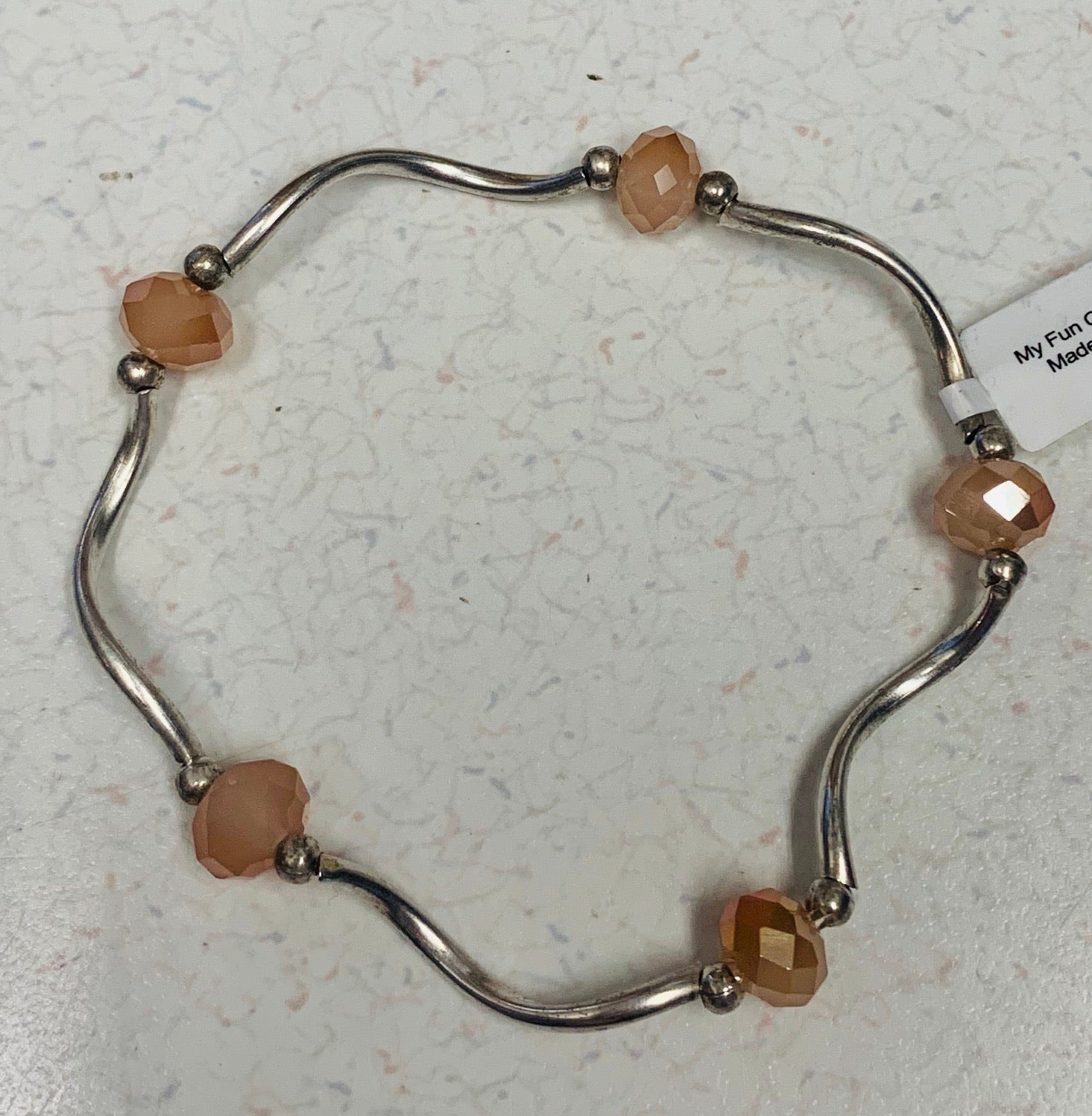 stretchy bracelet; beads and plated silver