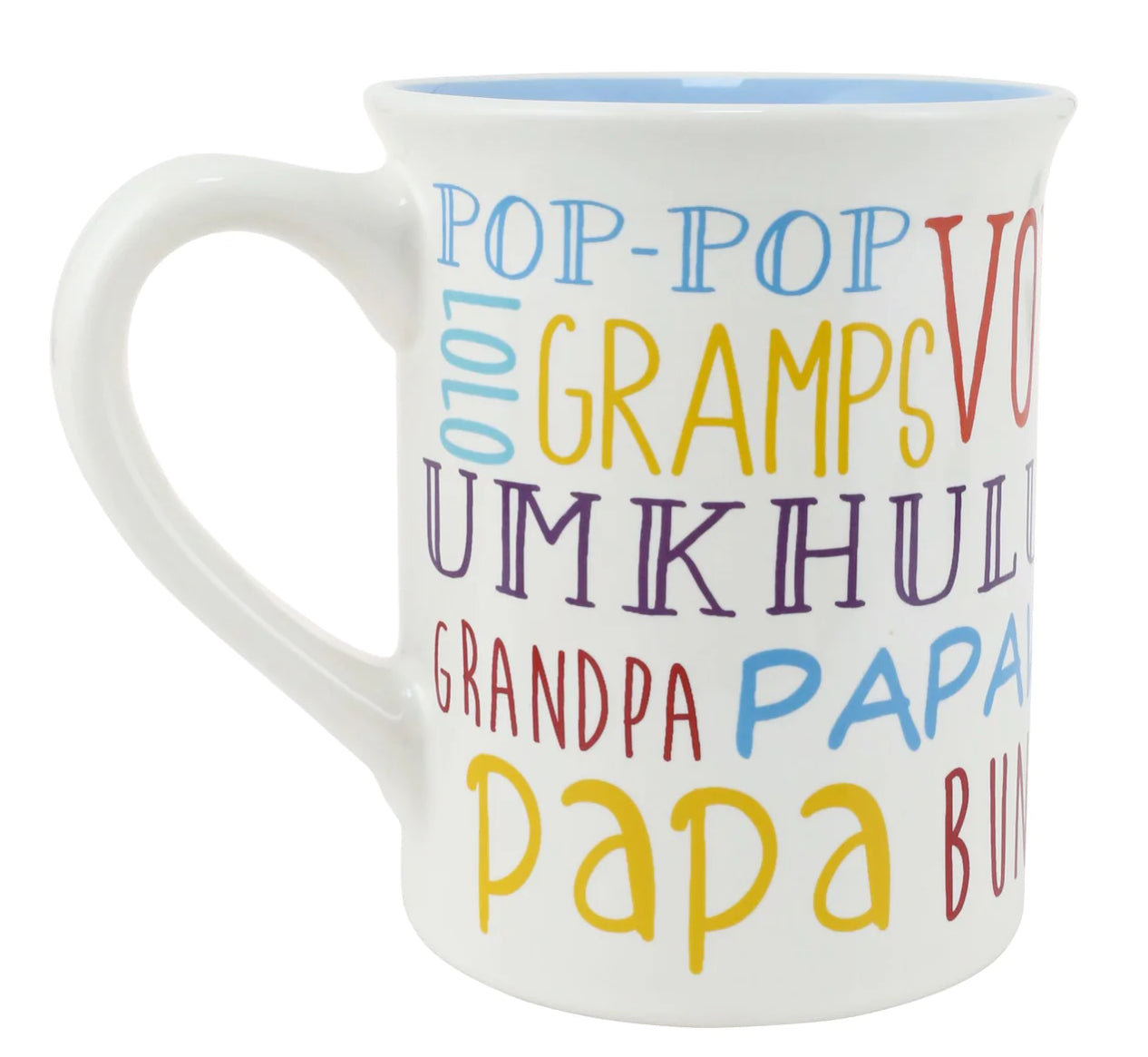 Let Grandpa know how much you care about him in every language. This colorful Our Name is Mud mug features the word Grandfather in an array of languages and fonts across the cup. No matter which dialect we choose, the language of love is universal.