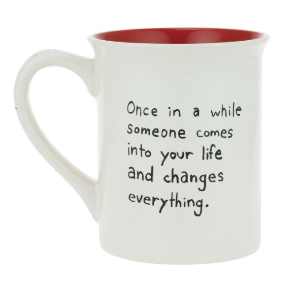 This sweet mug is covered in love. Using storybook imagery, this vibrant red detailed mug lets your special someone know they're your happy ending. Let them know that they've changed your story forever and end the war on who loves who more.
