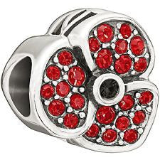 Sterling Silver w Stone - Jeweled Poppy - Red Swarovski