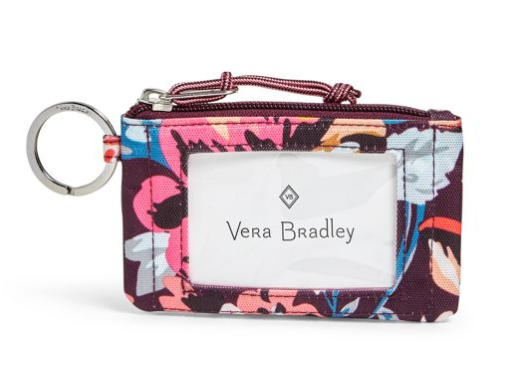 Lighten Up fabrication is lightweight, durable and water-repellent. Signature key ring. Front ID window. Interior compartment. Zip closure.